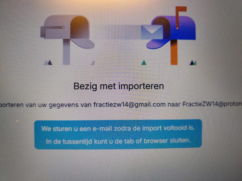 Maar ook zonder handleiding lukte het om het gmail-adres van de fractie om te zetten naar FractieZW14@proton.me. Het was zelfs mogelijk om alle mails en contacten te importeren. De volgende stap is om in alle social media accounts het mailadres aan te passen.